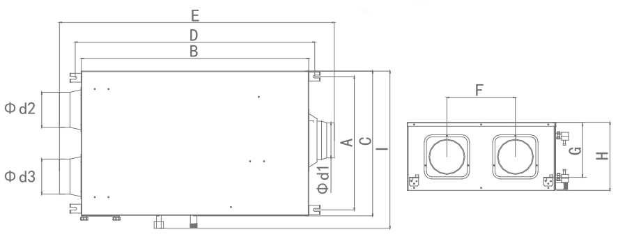 | 型号 | A | B | C | D | E | F | G | H | I | Φd1 | Φd2 | Φd3 |